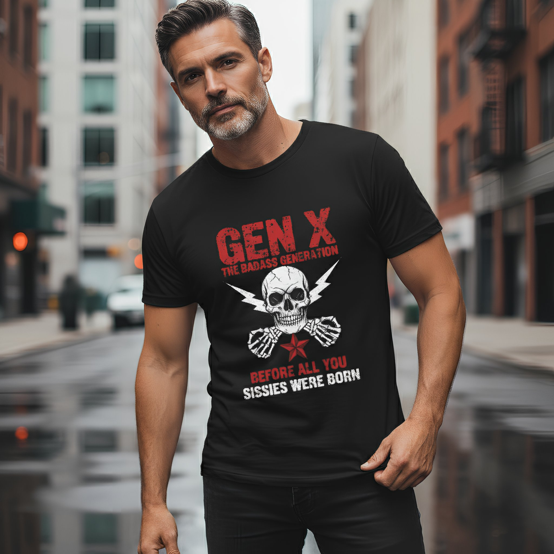 Meet the shirt that says what everyone’s thinking, no filter, just full Gen X attitude. Our “Gen X: The Badass Generation | Before All You Sissies Were Born” tee is for those who grew up tough, independent, and a little bit rebellious. Featuring a distressed skull and crossbones with lightning bolts, this shirt is a badge of honor for anyone who remembers streetlight curfews and mixtapes. Soft, high-quality cotton with a fit that’s made for everyday wear (from the city streets to the couch: no judgment).